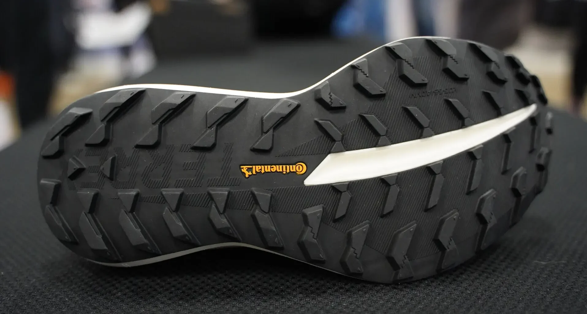 Снизу мы находим, как это обычно бывает у Adidas Terrex, подошву с резиновым компаундом Continental. Дизайн сочетает протектор высотой примерно 3,5–4 мм. с разной выраженностью в зависимости от зоны: менее агрессивный в центральной части и более выраженный в боковых и задних зонах для улучшения сцепления. Это не особенно агрессивный протектор, поэтому кроссовки будут лучше показывать себя на твердых покрытиях или легкой пересеченной местности, сохраняя при этом определенную универсальность для разных поверхностей.