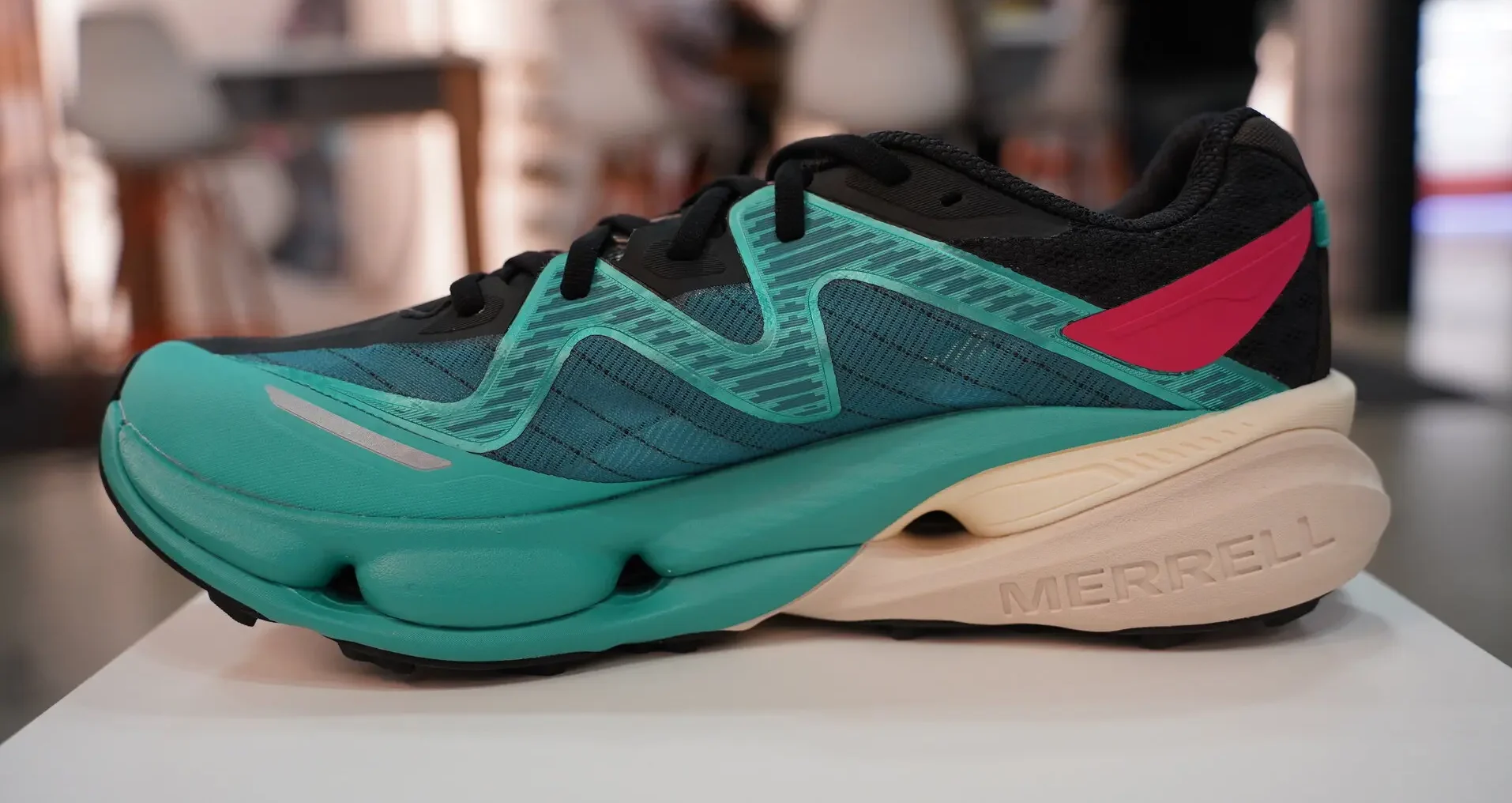 В верхней части кроссовка Merrell использует технологию Matryx, которая сочетает в себе легкость и прочность в очень тонком, но прочном материале, усиленном как в передней, так и в задней части стопы. Несмотря на ориентацию на спортивные результаты, сохраняется определенная структура, в результате чего вес кроссовка превышает 300 грамм.