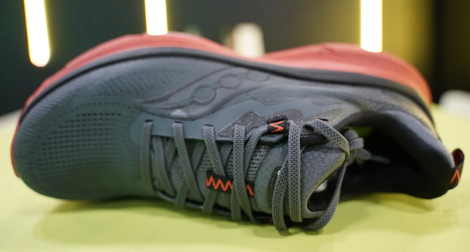 Верхняя часть кроссовка выполнена по дизайну, очень похожему на обувь для бега по шоссе. Она отличается лаконичной и удобной конструкцией без значительных усилений в области носка, отдавая приоритет легкости и комфорту, а не экстремальной защите. В области пятки используется более жесткая структура, которая помогает фиксировать стопу и усиливает ощущение поддержки, характерное для этой модели. В целом, Saucony Guide TR ориентирована на бегунов, которым необходима хорошая амортизация, широкая подошва и дополнительная устойчивость на легких пробежках. Они станут отличной альтернативой для бега по гравийным дорогам и бега по пересеченной местности, идеально подойдут тем, кто хочет начать пробежку на асфальте и закончить на пересеченной местности, не меняя обувь.