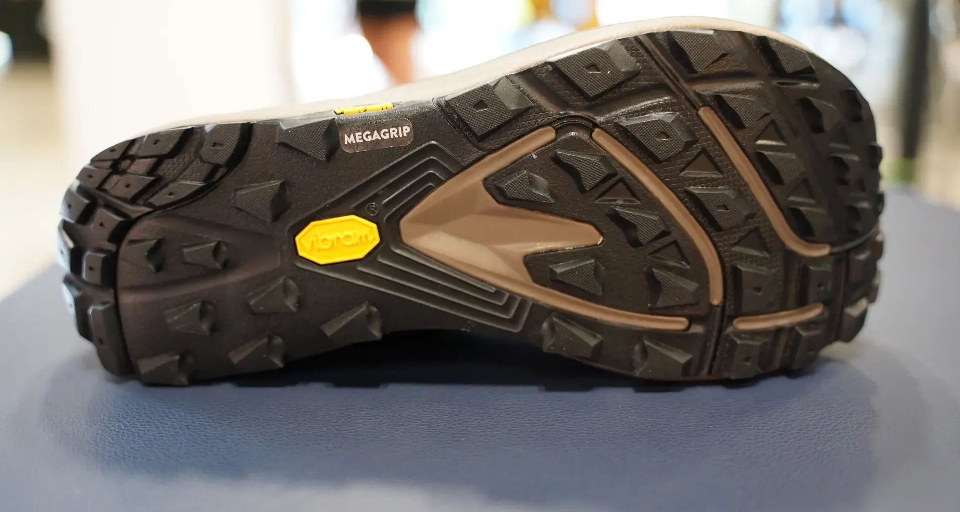 На подошве находится композит Vibram Megagrip, гарантирующий сцепление и долговечность. Выступы диаметром около 5 мм. с разнонаправленной конструкцией предназначены для обеспечения тяги на подъемах, удержания на спусках и безопасности боковых опор. Кроме того, обувь сохраняет характерные для бренда линии изгиба, улучшая адаптируемость к местности, несмотря на то, что это относительно высокопрофильная обувь.